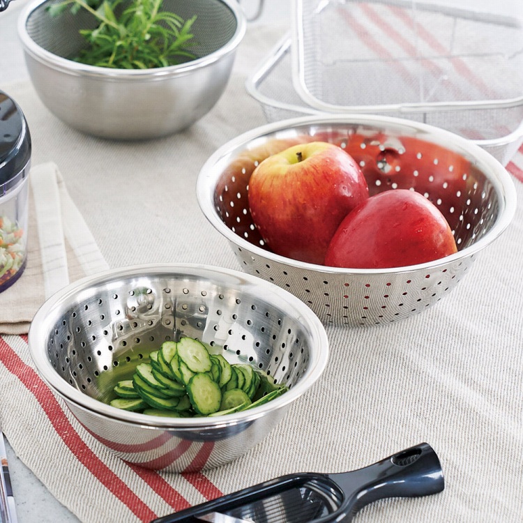 ステンレス製のボウルとパンチングザルをセットにしました。