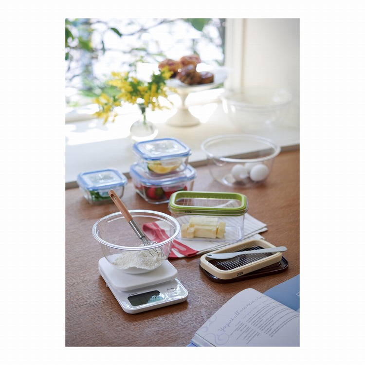 包丁などで切りにくいブロック状のバターを約10g(450gバター使用時)又は約5g(200gバター使用時)に上から押し込むだけでカットができるバターカッター。