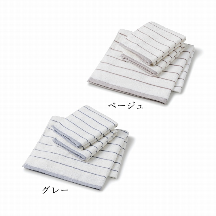 ボーダーデザインのシンプルなタオルセットです。