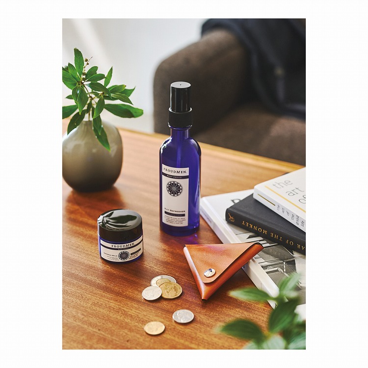 スーツの消臭とほのかな香りづけを叶えるスーツリフレッシャーと、塗るフレグランスのグルーミングバームのセット。