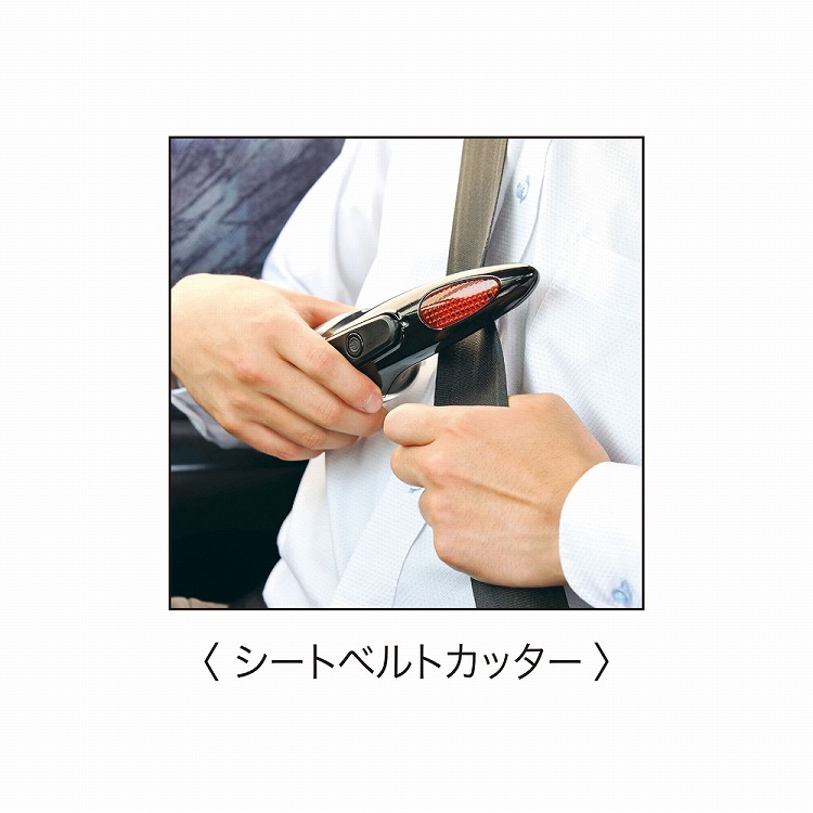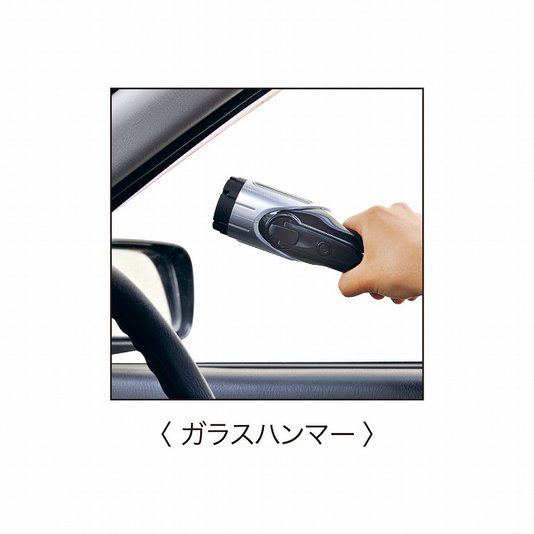 ●内容:ライト(1灯)・緊急用フラッシュライト(赤色)・ガラスハンマー・シートベルトカッター・マグネット付