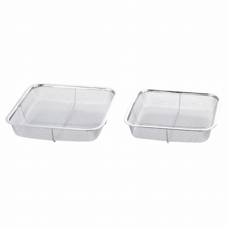 丈夫でさびにくいステンレス製で、収納しやすい角型ザルセット。