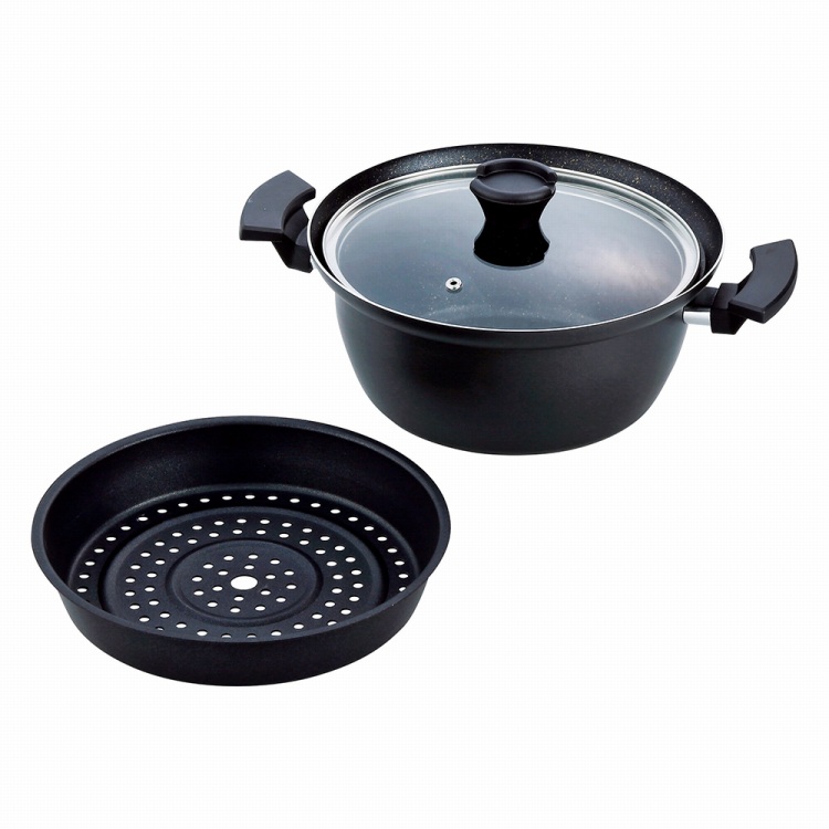 煮物に便利な深鍋に、蒸し目皿が付属しています。