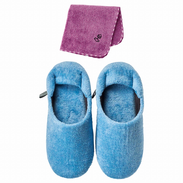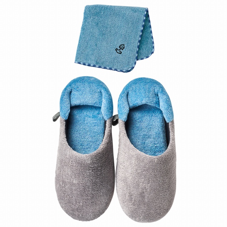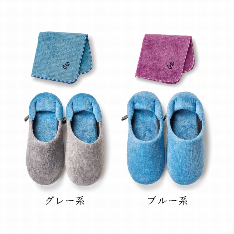 山形県の足袋を縫う技術で作られたルームシューズとハンカチのセット。