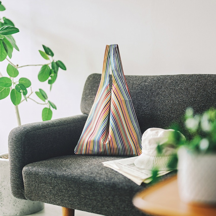 サステナブルなものづくりと世界の多様性を表現した美しいたて縞が特長の小倉織のバッグ。