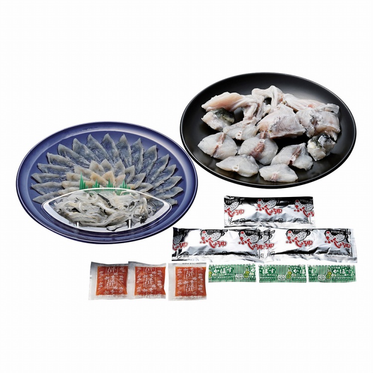 商品内容●セット内容:刺身45g・皮40g・ふぐちり250g各1、ふく醤油・もみじおろし・かぼす果汁付