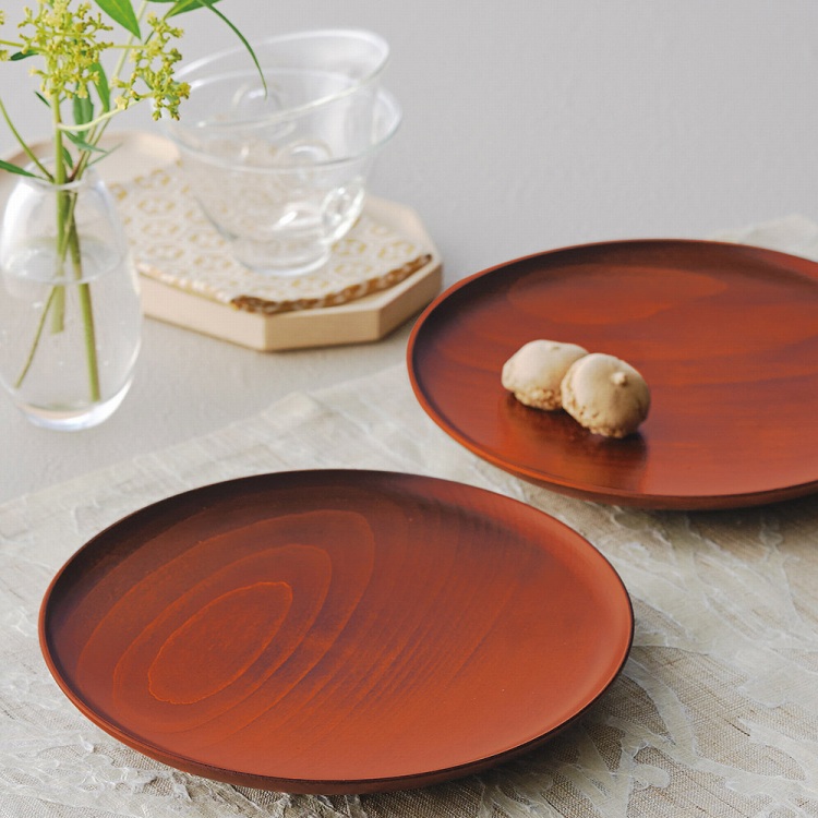 ひとつひとつ丹精を込めて作り上げた木地に、下塗りと上塗りをして仕上げた温かみのある丸皿です。