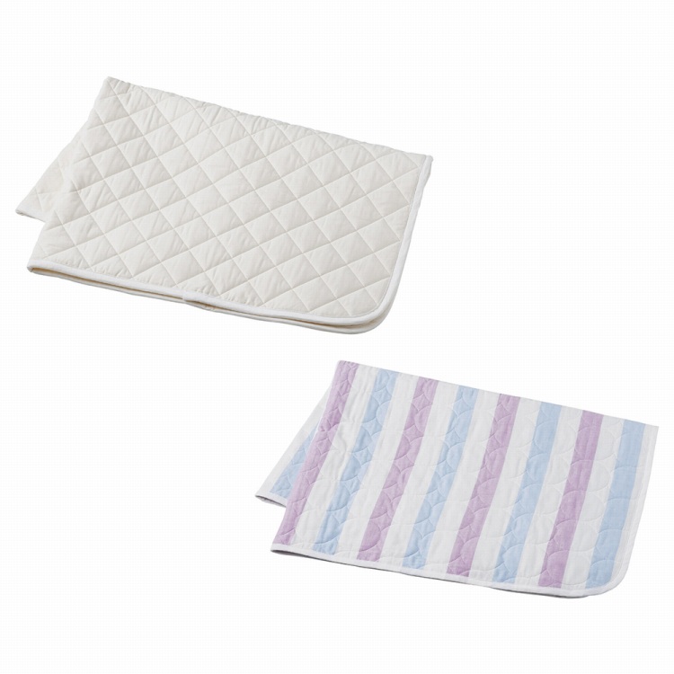 ●材質:(パットシーツ)側地/綿100%(ガーゼ)、詰めもの/〈上層・下層〉綿85%(脱脂綿)・複合繊維(ポリエステル)15%、〈中層〉綿60%(脱脂綿)・ポリエステル40%、(キルトケット)側地/綿100%(ガーゼ)、詰めもの/綿85%(脱脂綿)、複合繊維(ポリエステル)15%