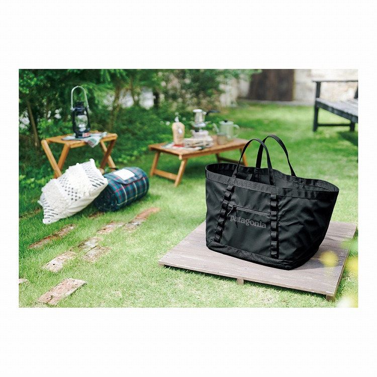 再生素材が叶えるアウトドアと日常の融合。 自然の中に身を置いて楽しむアウトドア体験が大人気です。そろえたギアをどのように使おうか、週末を楽しみにしている人も多いことでしょう。それらを扱うアウトドアブランドの多くは遊びのフィールドである自然をリスペクトし、環境に優しく、使い勝手も良い製品開発を心がけています。環境保全への意識も高まる中、キャンプに再び注目が集まるのは当然と言えば当然なのかもしれません。 アメリカ・カリフォルニアのブランド、パタゴニアもそういったブランドのひとつです。900デニールリップストップ・リサイクル・ポリエステル素材を使用したブラックホールギアトートなど、同ブランドは自社アイテムの素材にリサイクル原料を使っています。もちろん、アウトドア専門ブランドならではの高い耐久性なども人気の理由ということは言うまでもありません。