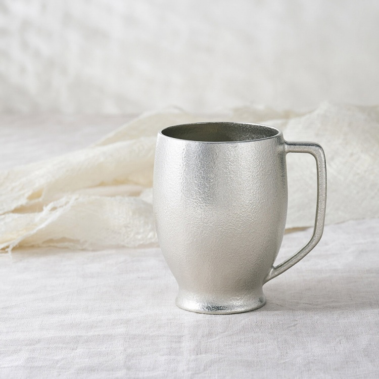 太陽光パネルを設置した工場で、電気溶解炉を使い、製造工程で出る金属片を溶かして再利用するなど自然環境・社会に配慮したものづくりの中で生まれた、どっしりとしたフォルムのビアマグ。
