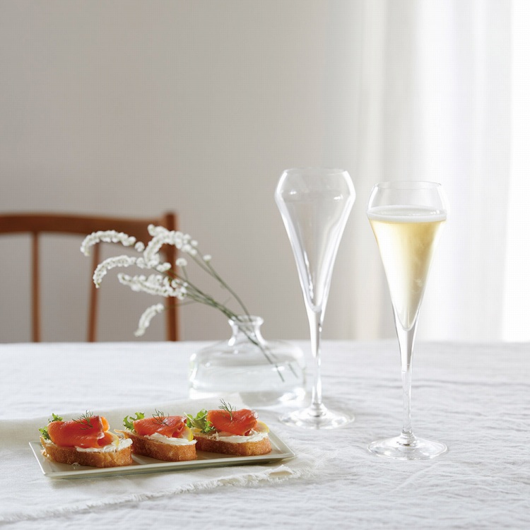 上部にアロマが凝縮され香りを長く楽しむことのできるフルートグラス。