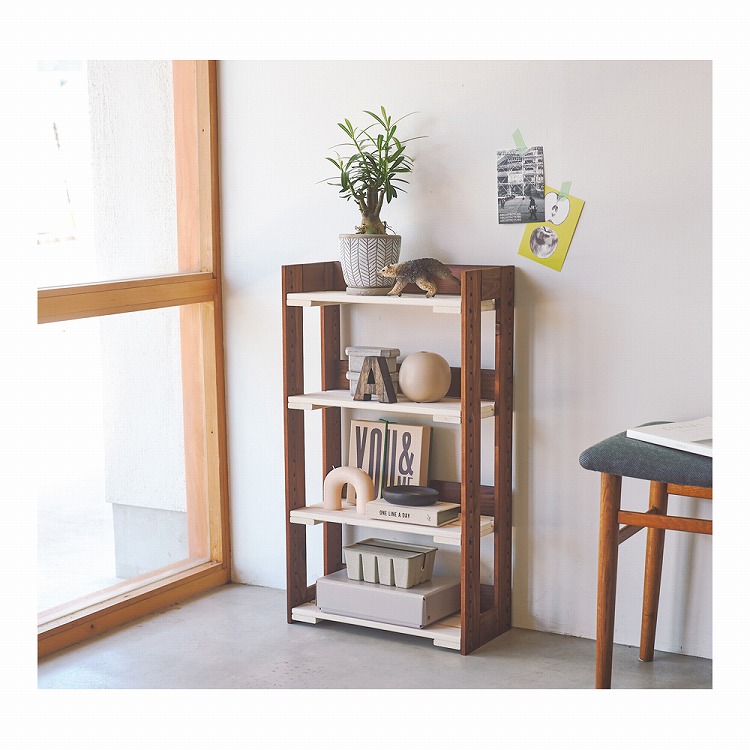 北海道の間伐材を水性塗料で仕上げた、自然な風合いの環境にやさしい木製ラック。
