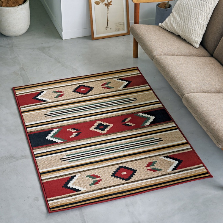 ウィルトン織は、柄を表しているパイル糸の他に地経糸・覆経糸・よこ糸の4種の糸を使って織りあげています。