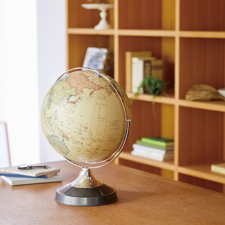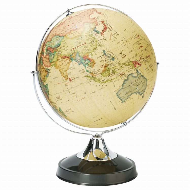 中世の地図をイメージして彩色したアンティークタイプの地球儀。