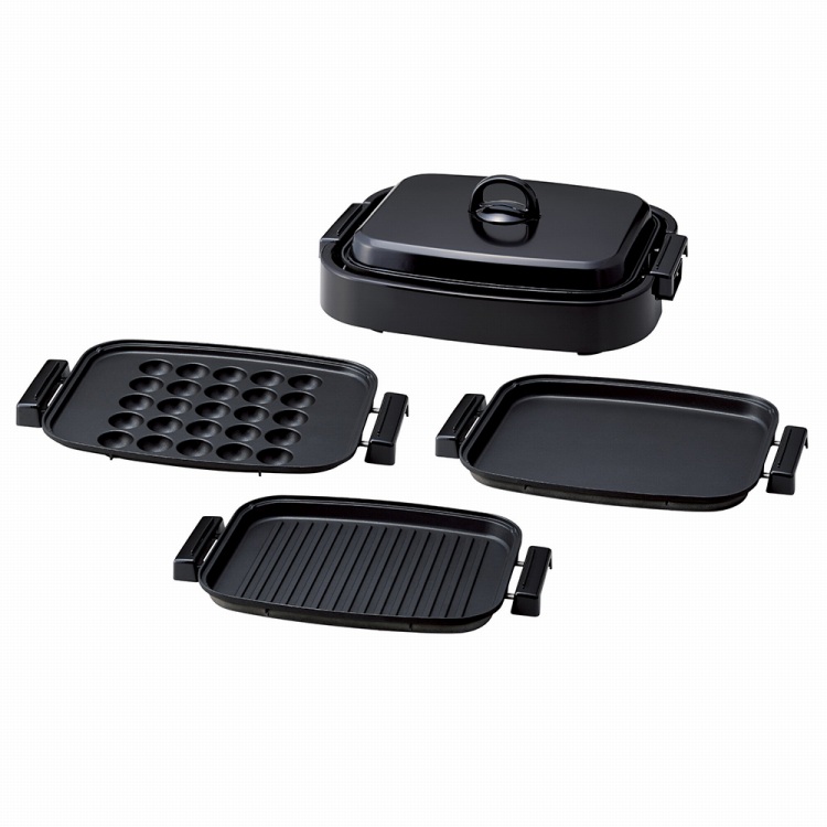 平面、波型、たこ焼きプレートがセットになったホットプレートです。