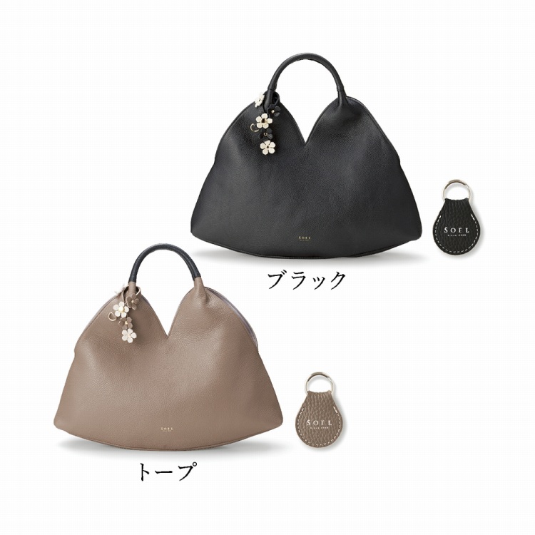 ●材質:バッグ/牛革(イタリアンレザー)、キーホルダー/牛革(イタリアンレザー)・鉄