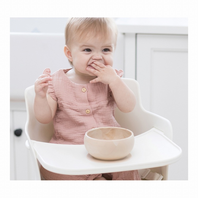 底面が吸盤状になっていて、テーブルにぴったりとくっついて固定できるので、ひっくり返りにくいボウルです。