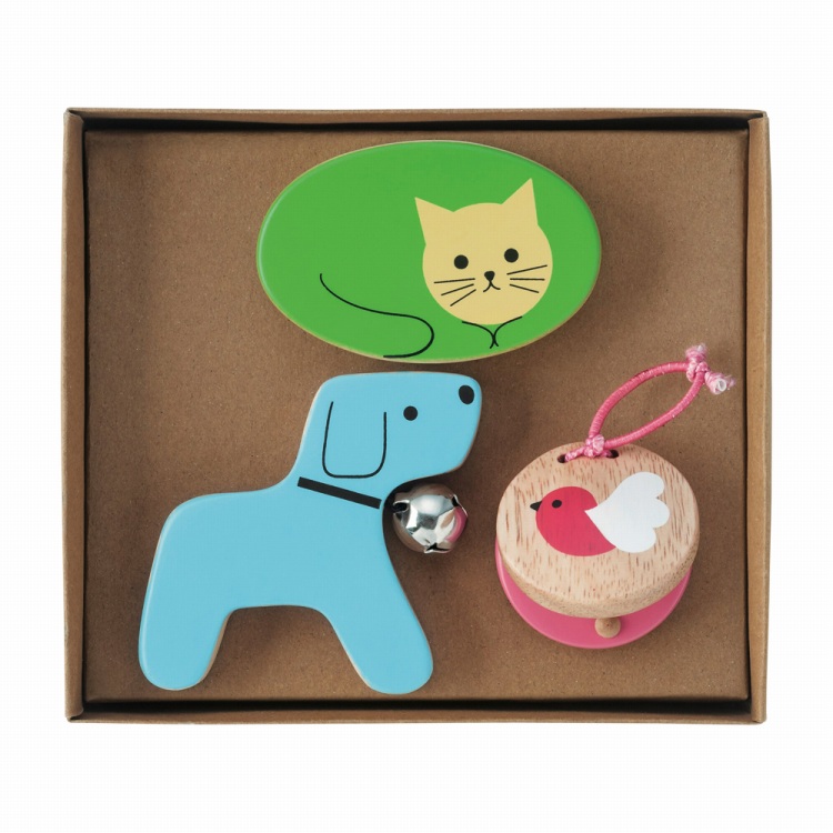 商品内容●商品:どうぶつなかよし(ベル〈約8.5×8.5×2cm〉・シェーカー〈約9×5.8×2cm〉・カスタネット〈約径5.4×2cm〉各1)、そらのかお(ベル〈約8.5×7×2cm〉・シェーカー〈約径7×2cm〉・カスタネット〈約径5.4×2cm〉各1)、ロバとはらっぱ(ベル〈約9×5.5×2cm〉・シェーカー〈約11×7.5×2cm〉・カスタネット〈約径5.4×2cm〉各1)