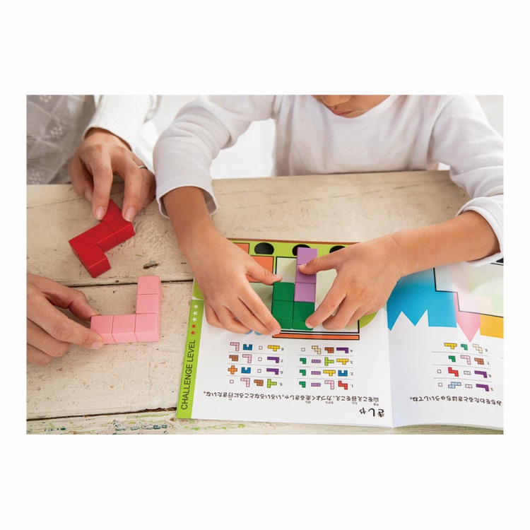 15個のカラフルなブロックを組み合わせて、いろいろな形を作るパズルです。