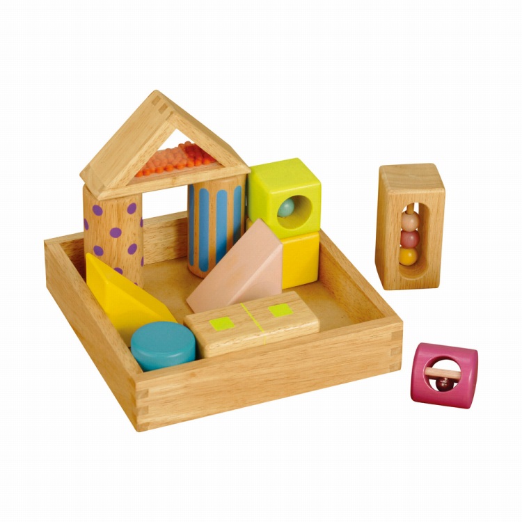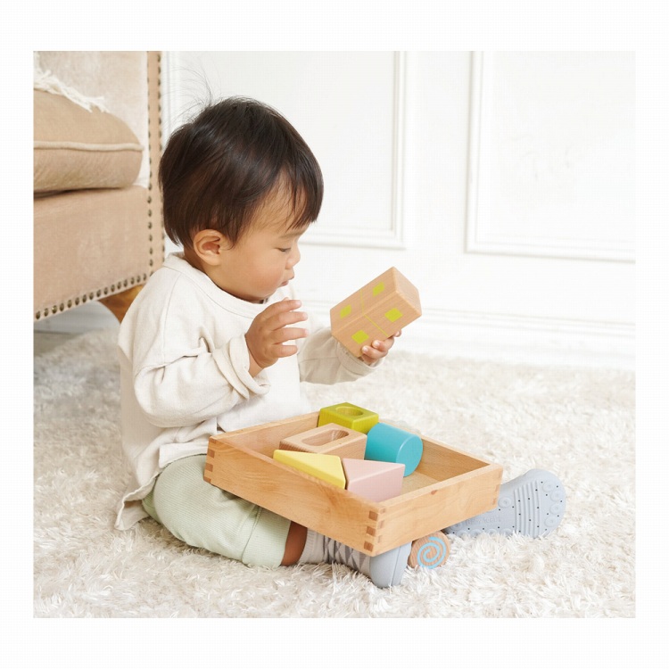 木箱にはめたり、高く積み上げることで、想像力や集中力を育みます。