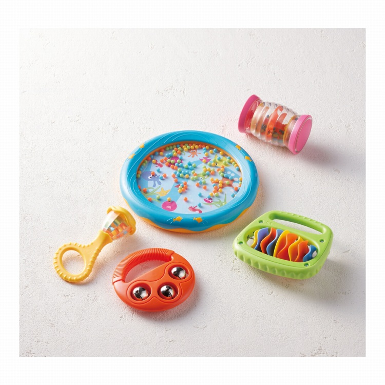 商品内容●商品:レインボーシェイカー(約5.7×8.5cm)・リングマイベル(約径9.5cm)・オーシャンドラム(約径18cm)・ニューベビーマラカス(約5×10cm)・クリップクラップ(約12×11×4.5cm)各1