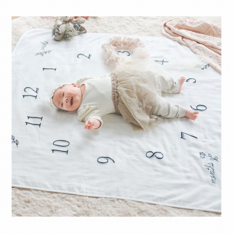 ベビーを中央に、数字にリースなどの印を置いて記念写真を撮ることができます。
