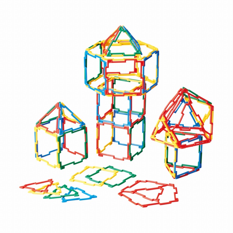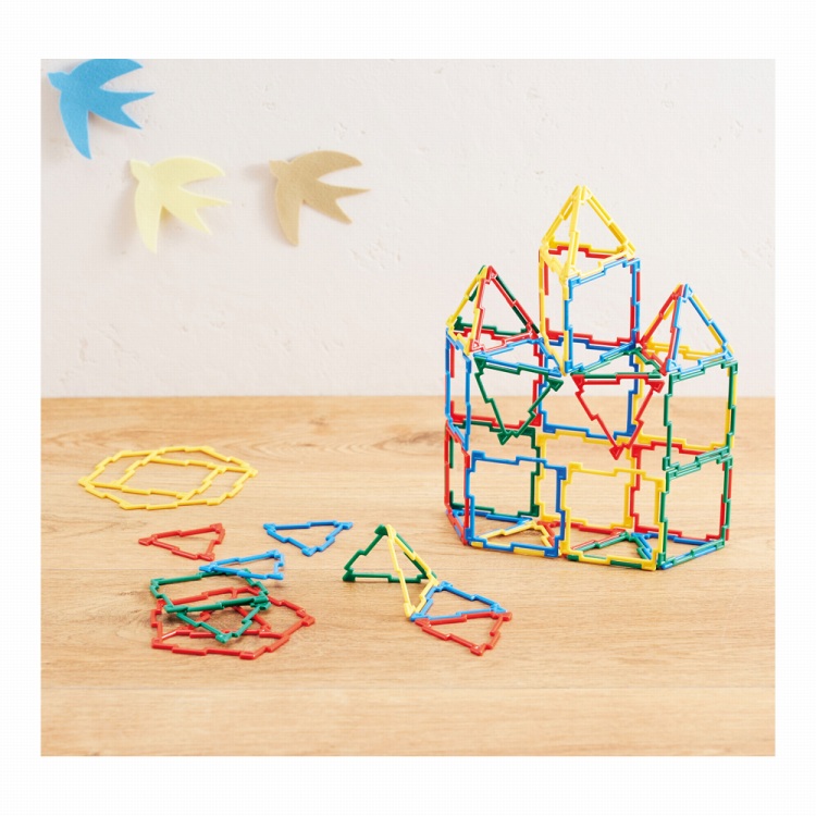 オーストラリアで算数の教材として生まれ、あそびながら立体の展開や構造を学べ、4つの図形の組み合わせは自由で無限の組み立てができます。