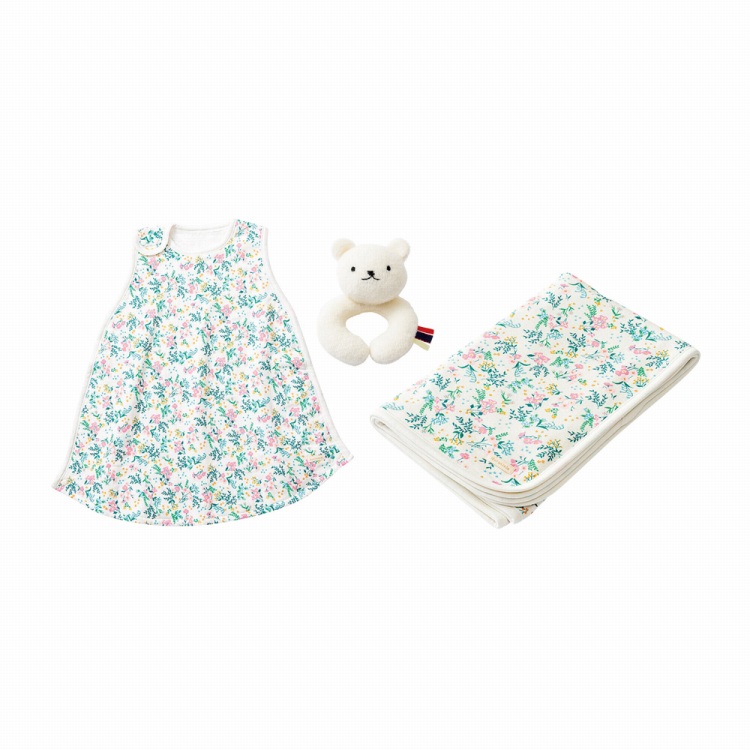商品内容●商品:スリーパー(適応身長60~100cm・身幅約36cm・着丈約55cm)・ブランケット(約90×65cm)・ラトル(約8×9cm)各1
