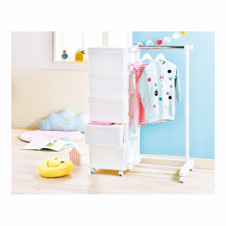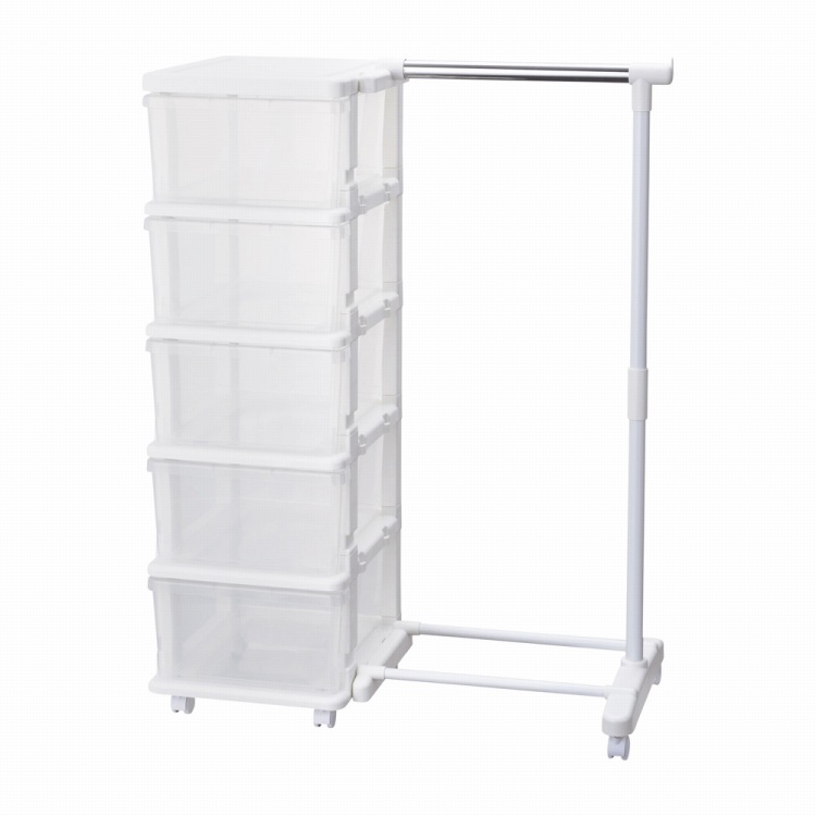 ●内容:耐荷重約2kg(引出1段あたり)・約10kg(ハンガー部)、キャスター付