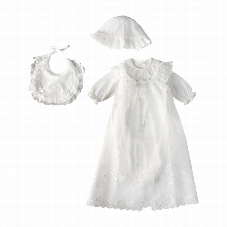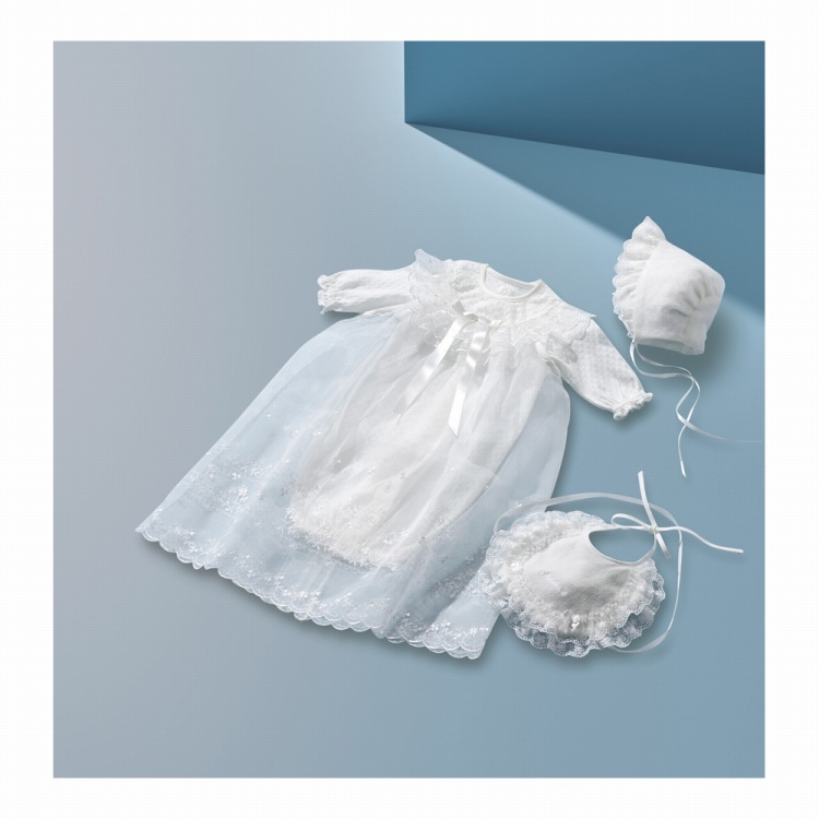 豪華なオーガンジーコートとツーウェイオール、セレモニー用フードと上品なレースをあしらったスタイをセットにしました。