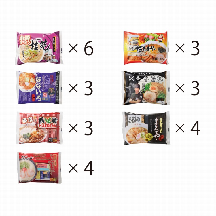 商品内容●セット内容:小樽桂苑(味噌/乾麺80g×1、スープ付)×6、山形だるまや(からし味噌/乾麺80g×1、スープ付)・高山なないろ(醤油/乾麺80g×1、スープ付)・鳥取香味徳(醤油/乾麺80g×1、スープ付)・東京楓家(醤油/乾麺80g×1、スープ付)各3、喜多方まるや(醤油/乾麺80g×1、スープ付)・博多いっちょいっちょ(とんこつ/乾麺80g×1、スープ付)各4