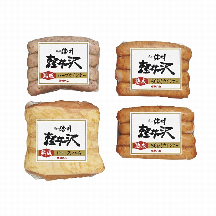 商品内容●セット内容:軽井沢熟成ロースハム360g・軽井沢熟成ハーブウインナー75g各1、軽井沢熟成あらびきウインナー75g×2
