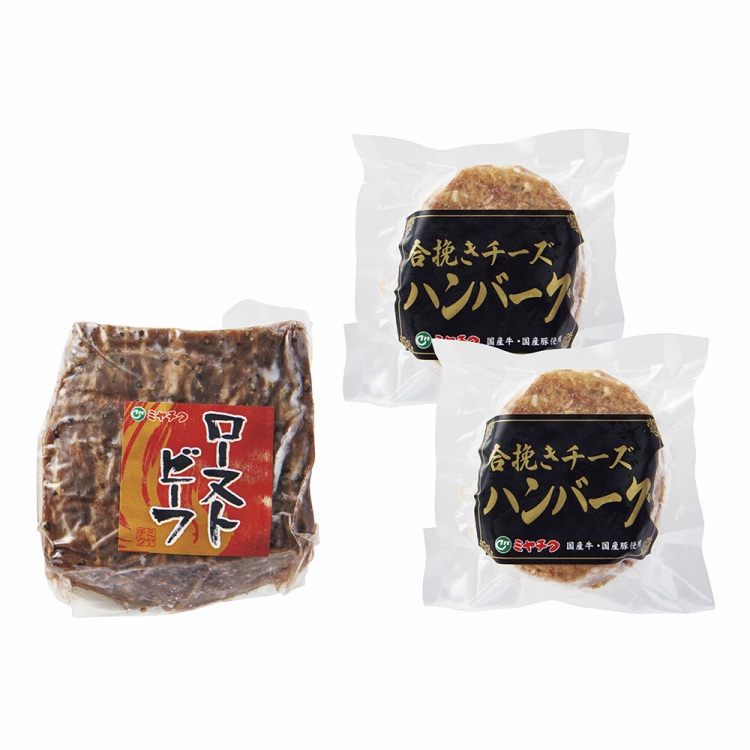 商品内容●セット内容:ローストビーフ(モモ/オーストラリア産)300g×1、合挽チーズハンバーグ2個入(合計200g)×2、ローストビーフソース・ハンバーグソース付