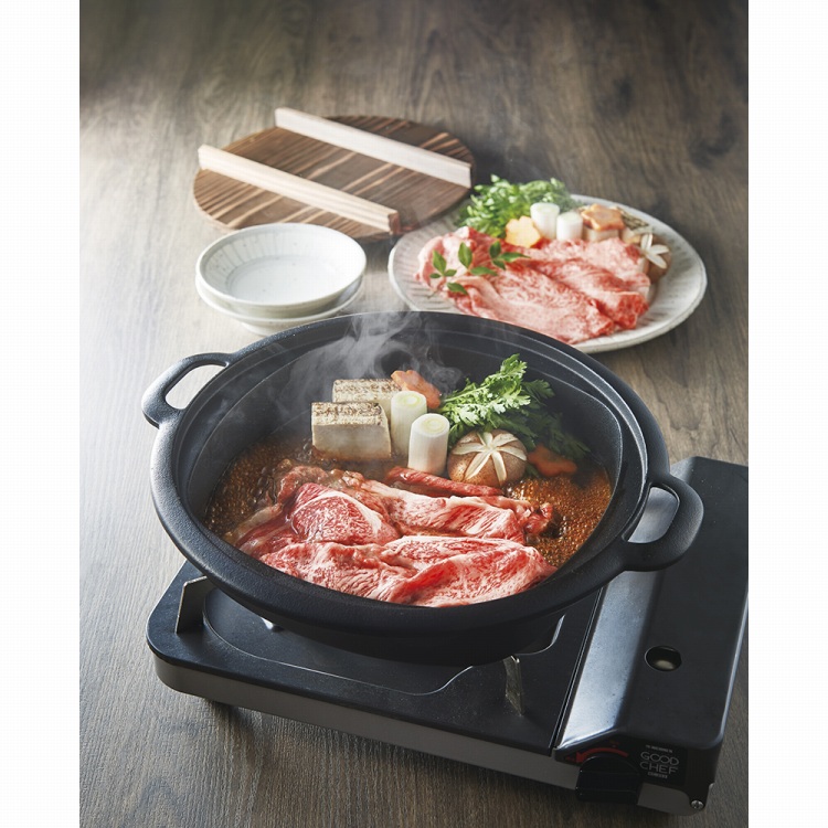 国産黒毛和牛 すき焼用&〈岩鋳〉すき焼兼用餃子鍋24cm