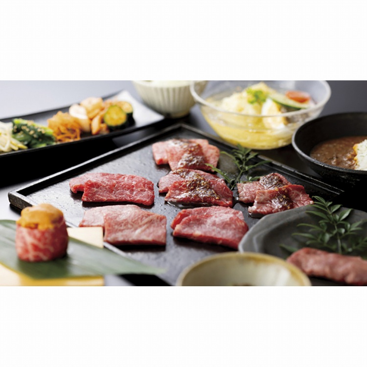 ●内容:キムチとナムル・本日の小鉢・肉巻きウニ軍艦・門崎熟成肉(霜降りしゃぶ焼き・本日の塩焼き・本日のタレ焼き)・タン塩・盛岡冷麺(ハーフ)もしくは熟成肉カレー(ハーフ)・アイス・ドリンク2杯(ボトル以外)