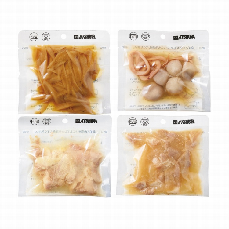 商品内容●セット内容:ごぼう金平100g・いか小芋100g・鶏みぞれ煮100g・豚肉と大根の味噌煮100g各1