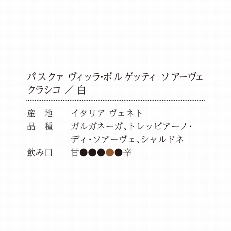 商品内容●パスクァ ヴィッラ・ボルゲッティ ソアーヴェ クラシコ750ml、ソムリエナイフ付