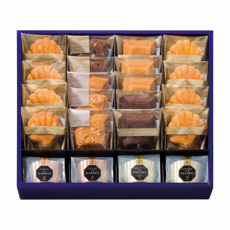 商品内容●セット内容:マドレーヌ×8、フィナンシェ・ヌーヴェルガレット(バニラ)各3、トリュフケーキ・ガトー オ マロン・フィナンシェショコラ・ヌーヴェルガレット(チョコ)各2
