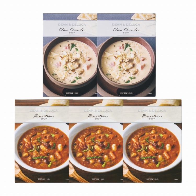商品内容●セット内容:ミネストローネ150g×3、クラムチャウダー150g×2