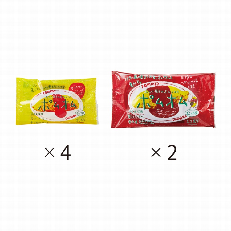 商品内容●セット内容:ポムオム230g(オムライス200g、ケチャップ付)×4、ポムオムハヤシ320g(オムライス200g、ハヤシソース付)×2