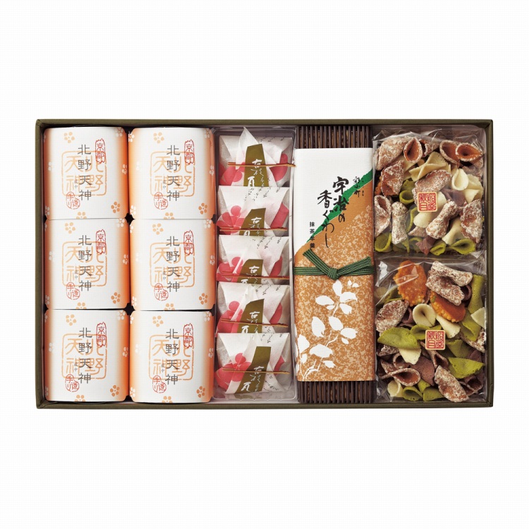 商品内容●セット内容:北野天神×6、古都瓦×5、吹き寄せ65g×2、宇治の香ぐわし×1