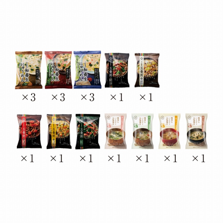 商品内容●セット内容:和養生にゅうめん(鶏とゆばの柚子塩・鴨南蛮・豆乳担々各3)、五養粥(黒・白・赤・黄・緑各1)、四季をいただくお味噌汁(葉もの野菜と白味噌・彩り野菜と花糀味噌・三種きのこと赤味噌・根もの野菜と田舎味噌各1)
