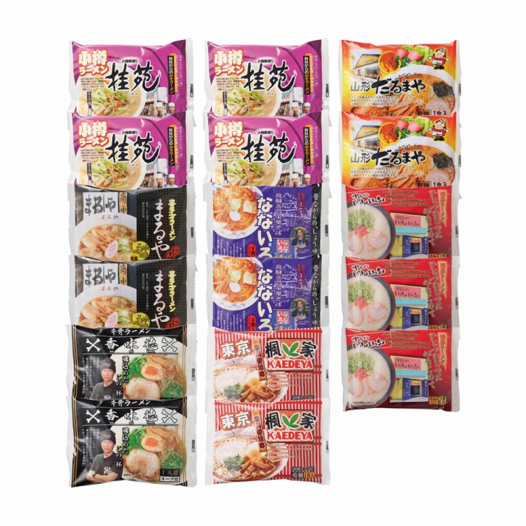 商品内容●セット内容:小樽桂苑(味噌/乾麺80g×1、スープ付)×4、山形だるまや(からし味噌/乾麺80g×1、スープ付)・喜多方まるや(醤油/乾麺80g×1、スープ付)・東京楓家(醤油/乾麺80g×1、スープ付)・高山なないろ(醤油/乾麺80g×1、スープ付)・鳥取香味徳(醤油/乾麺80g×1、スープ付)各2、博多いっちょいっちょ(とんこつ/乾麺80g×1、スープ付)×3