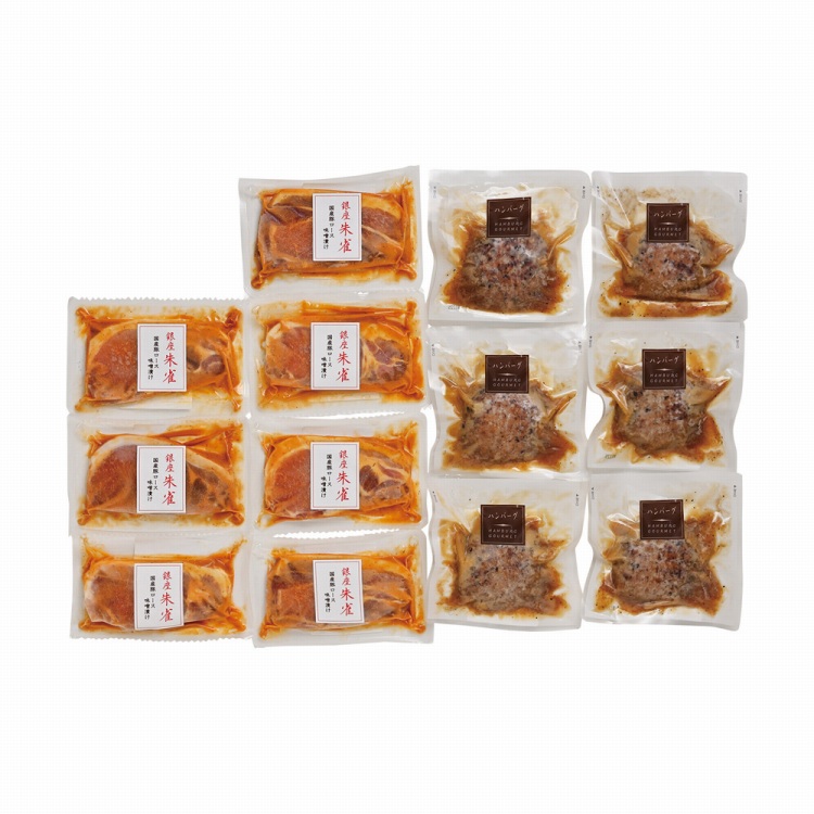 商品内容●セット内容:和風たまねぎソースのハンバーグ160g(固形量120g)×6、国産豚ロース味噌漬け125g×7