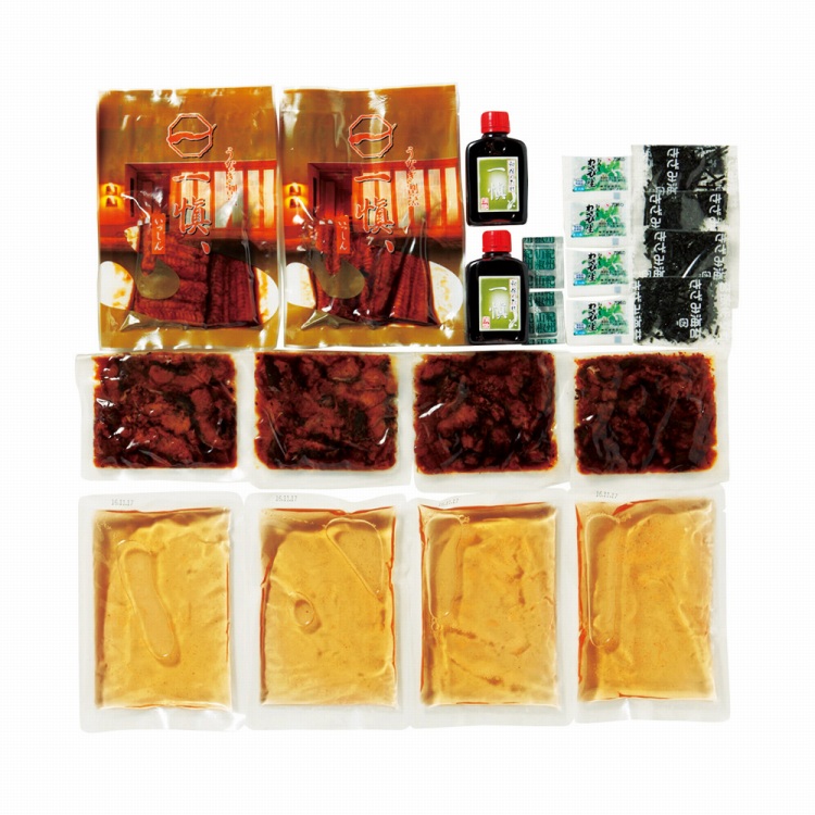 商品内容●セット内容:うなぎ蒲焼55g×2、刻みうなぎ45g×4、吸い地(だし)・刻みのり・わさび・タレ・山椒付