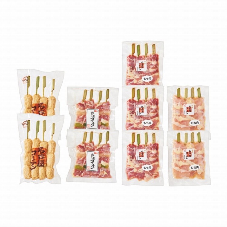 商品内容●セット内容:名古屋コーチンモモ×12串、名古屋コーチンムネ・名古屋コーチンねぎま・名古屋コーチン入りつくね各8串、焼鳥のタレ付