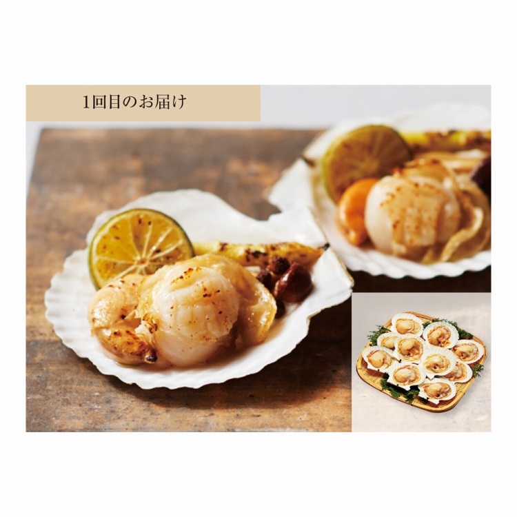 磯のかおりが食欲をそそる帆立片貝と、様々なお料理に使える車海老を堪能できるコースです。