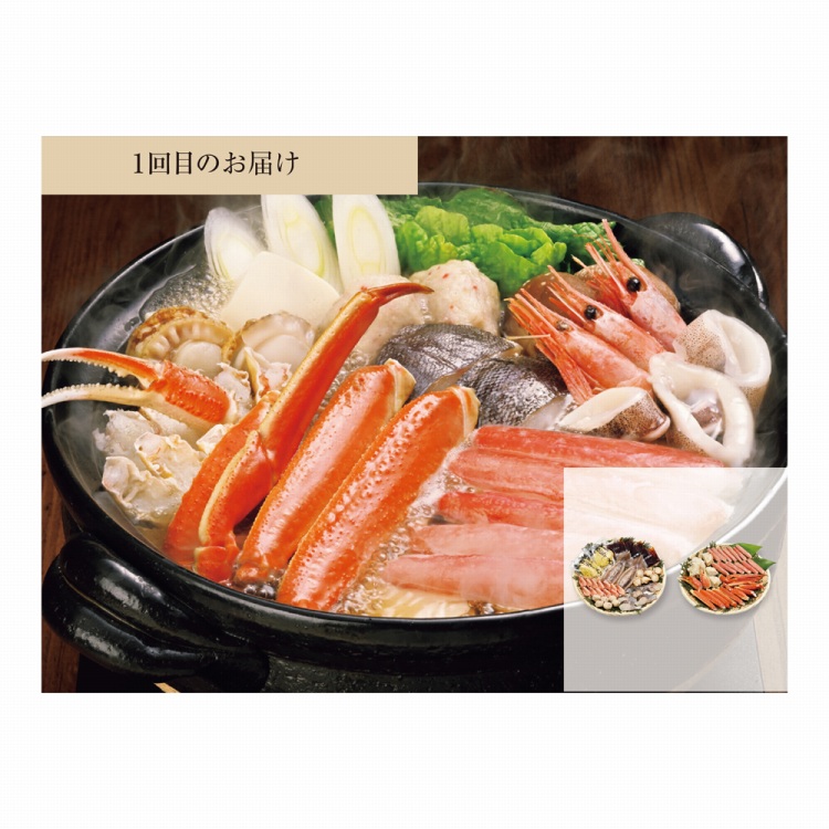 一回目は海鮮かに鍋、二回目ははもセット、三回目はとらふぐのちり鍋が楽しめる、盛り沢山な海鮮鍋三昧コースです。