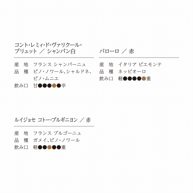 商品内容●コント・レミィ・ド・ヴァリクール・ブリュット750ml×2、ルイジョセ コトー・ブルギニヨン750ml×2、バローロ750ml×2、ソムリエナイフ付