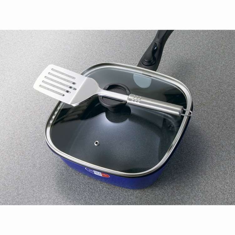 ガラス蓋のツマミにはターナーや菜箸を一時置きすることができ、調理中の使い勝手も良い仕様です。